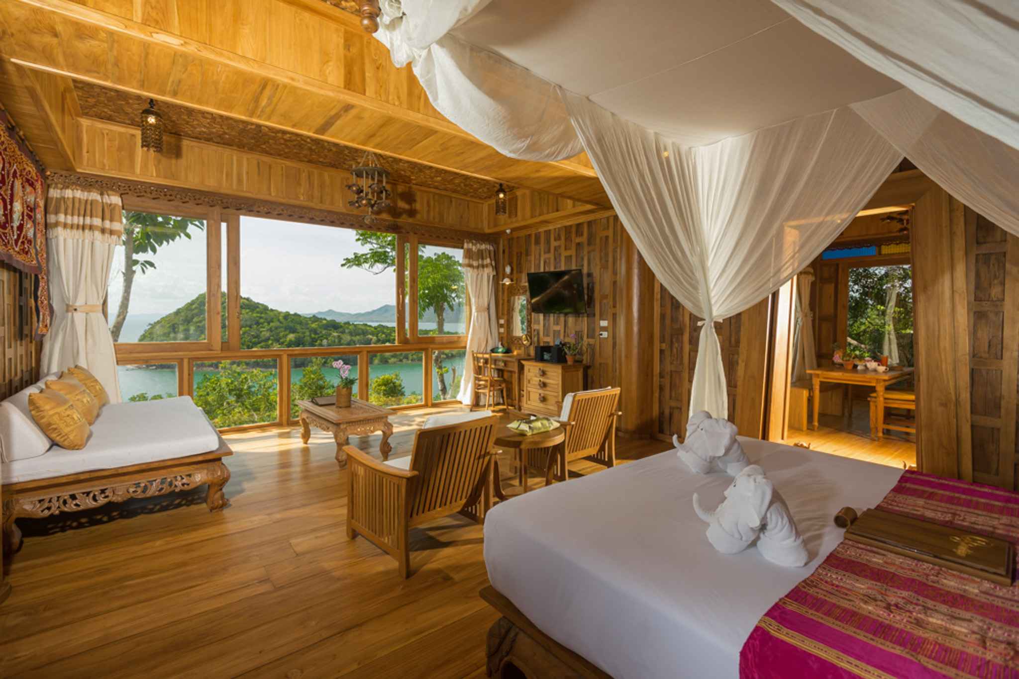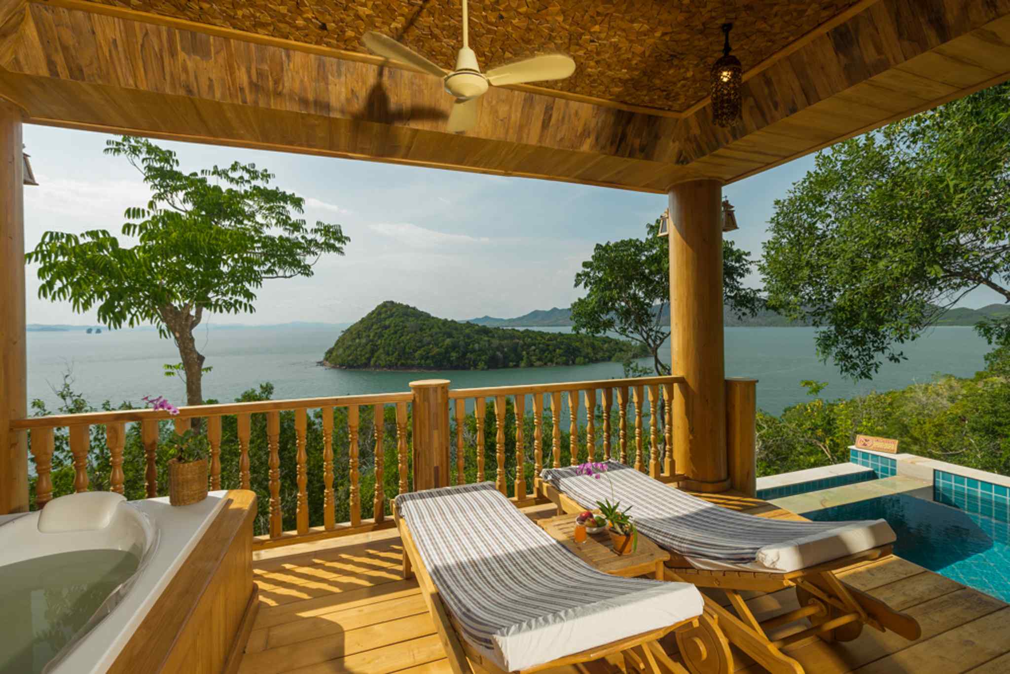 Luxurious traditional Thai-style suites feature expansive terraces overlooking the Andaman Sea and panoramic skyline. Perfect for couples or families, these spacious suites create a private luxury experience enriched with Thai touches. Each suite includes a private seawater swimming pool, filtered through multiple stages for cleanliness, offering the sensation of swimming in the sea. Guests can also enjoy a comfortable patio and an outdoor submerged bathtub—designed to make relaxation entirely your choice and pleasure.