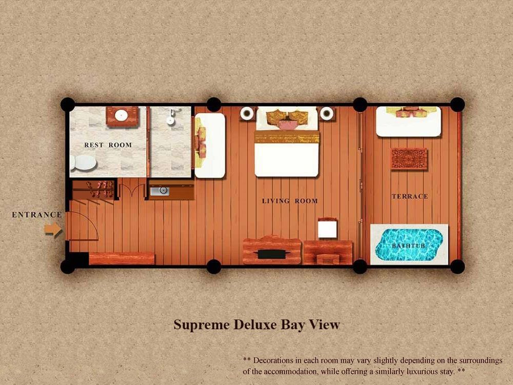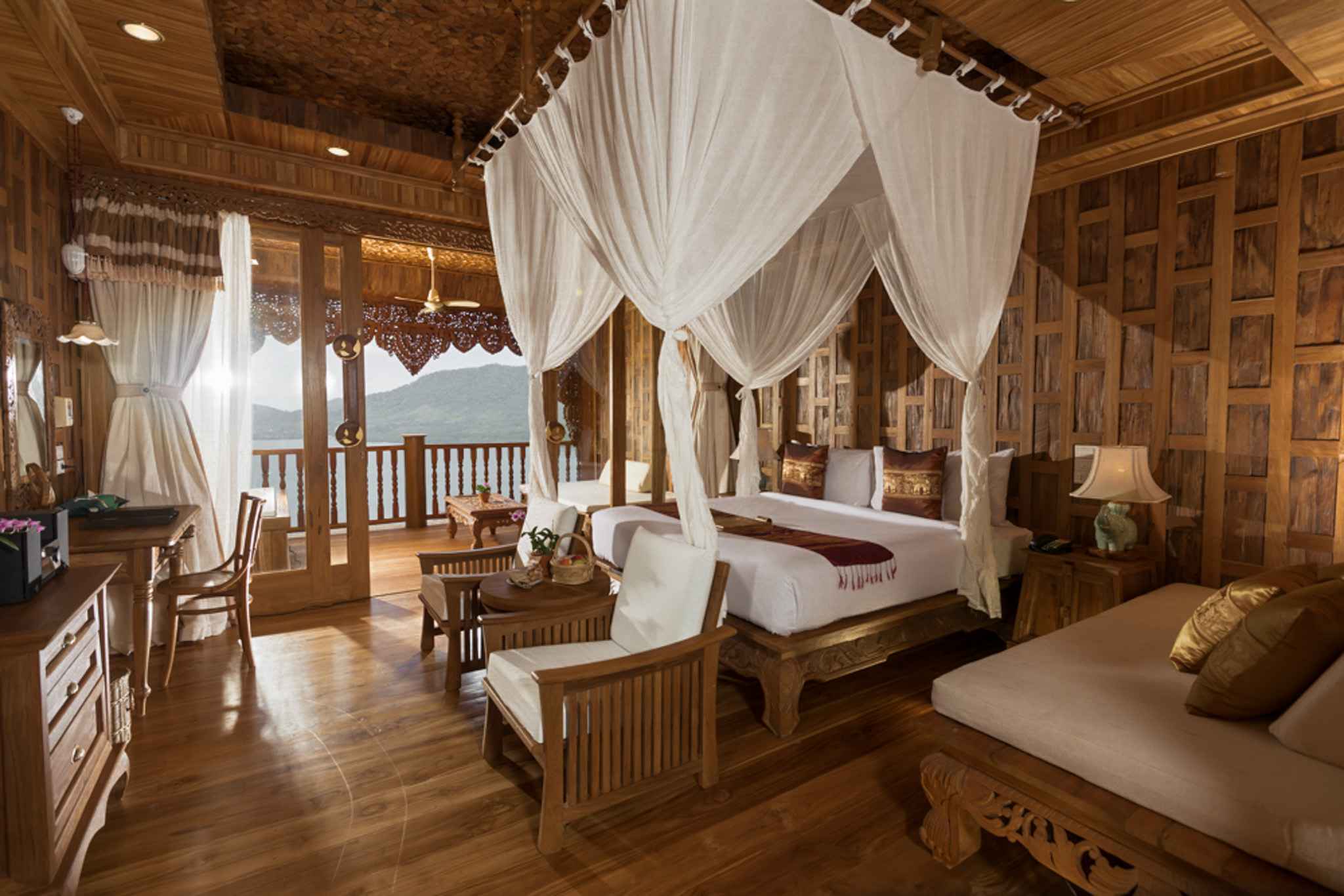 Overlooking the Andaman Sea on the top of our private hill, Supreme Deluxe Bay View offers stunning panoramic ocean and mountain views. Perfect for a couple or small families, all rooms furnished with exotic handcraft wood in a traditional Thai style.