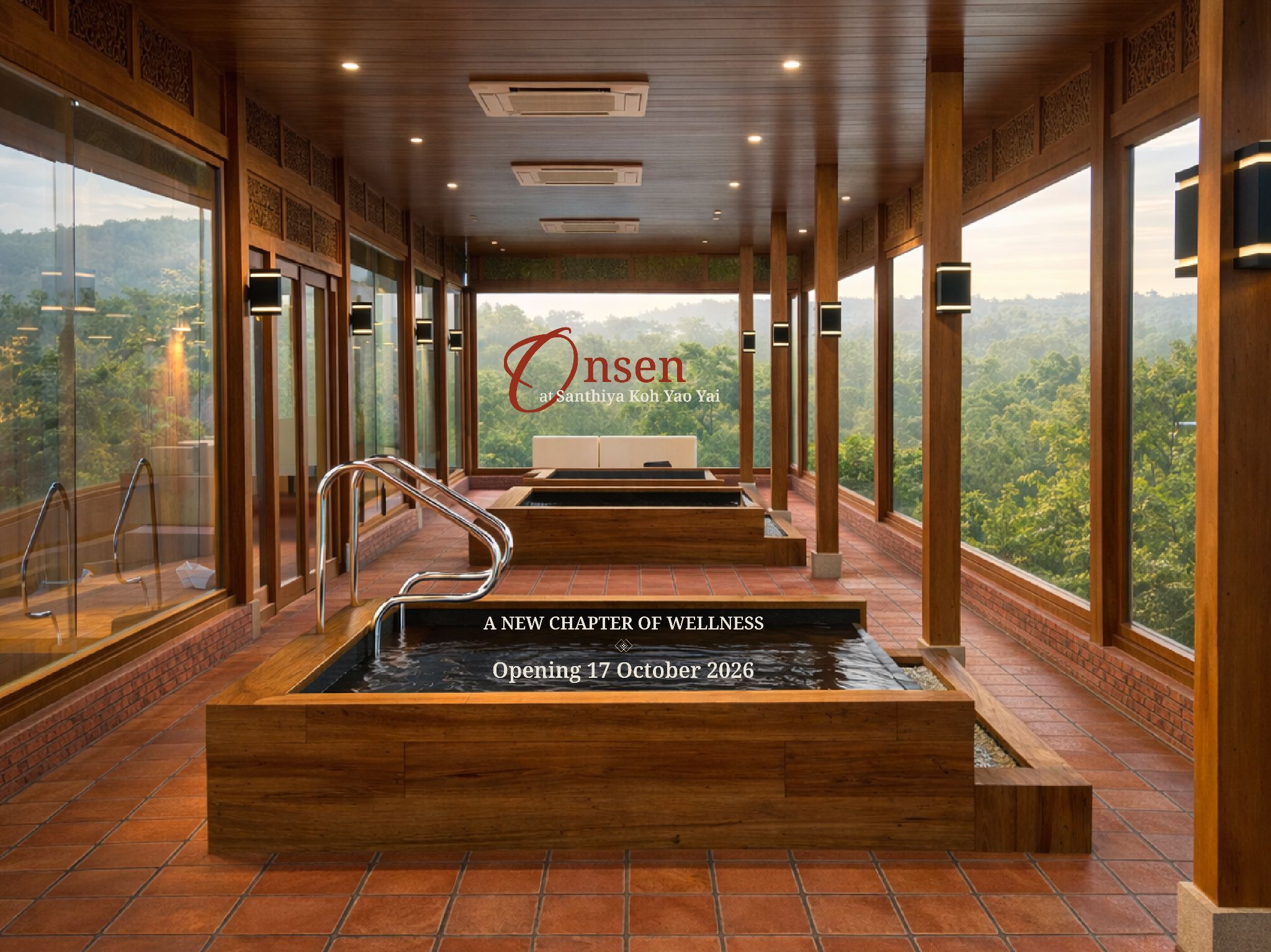 "A new wellness destination above the sea. Set high within Santhiya Koh Yao Yai, the new onsen invites guests into a journey of calm, contrast, and renewal — surrounded by panoramic sea views and the timeless beauty of Thai-crafted design. It is more than a place to soak, but a new signature experience to remember."