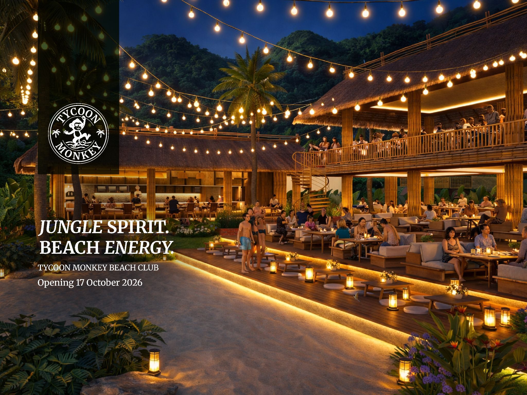 Tycoon Monkey Beach Club is a jungle-inspired luxury beach playground in Koh Yao Yai, Thailand. Our club caters to European travelers and Asian tastemakers, providing thrilling adventures and relaxing sunlit rituals in a vibrant social atmosphere. Experience the largest beach club in the region as we aim to create unforgettable moments amidst lush surroundings.